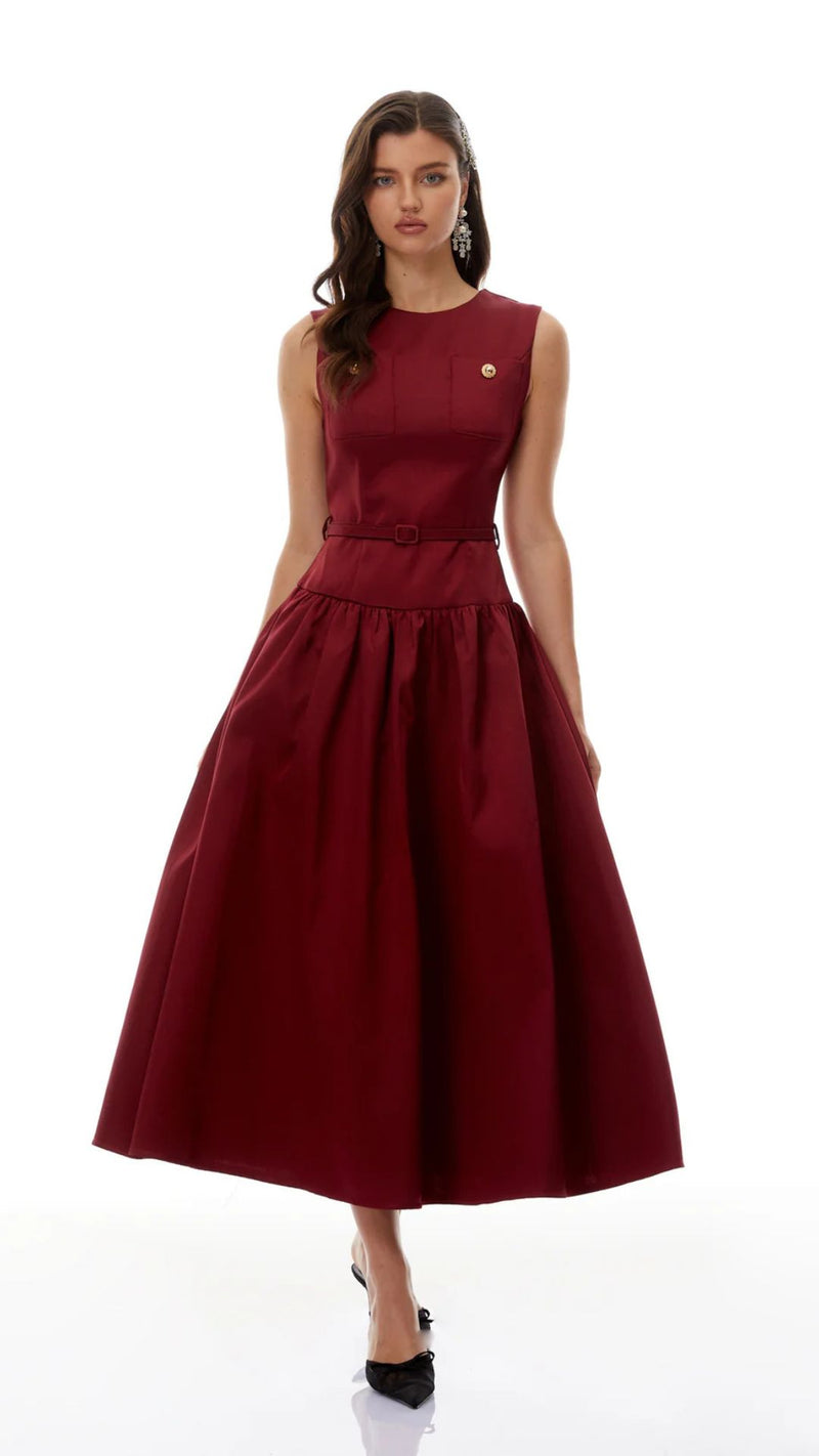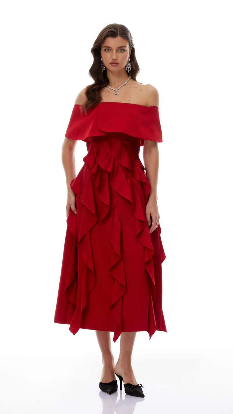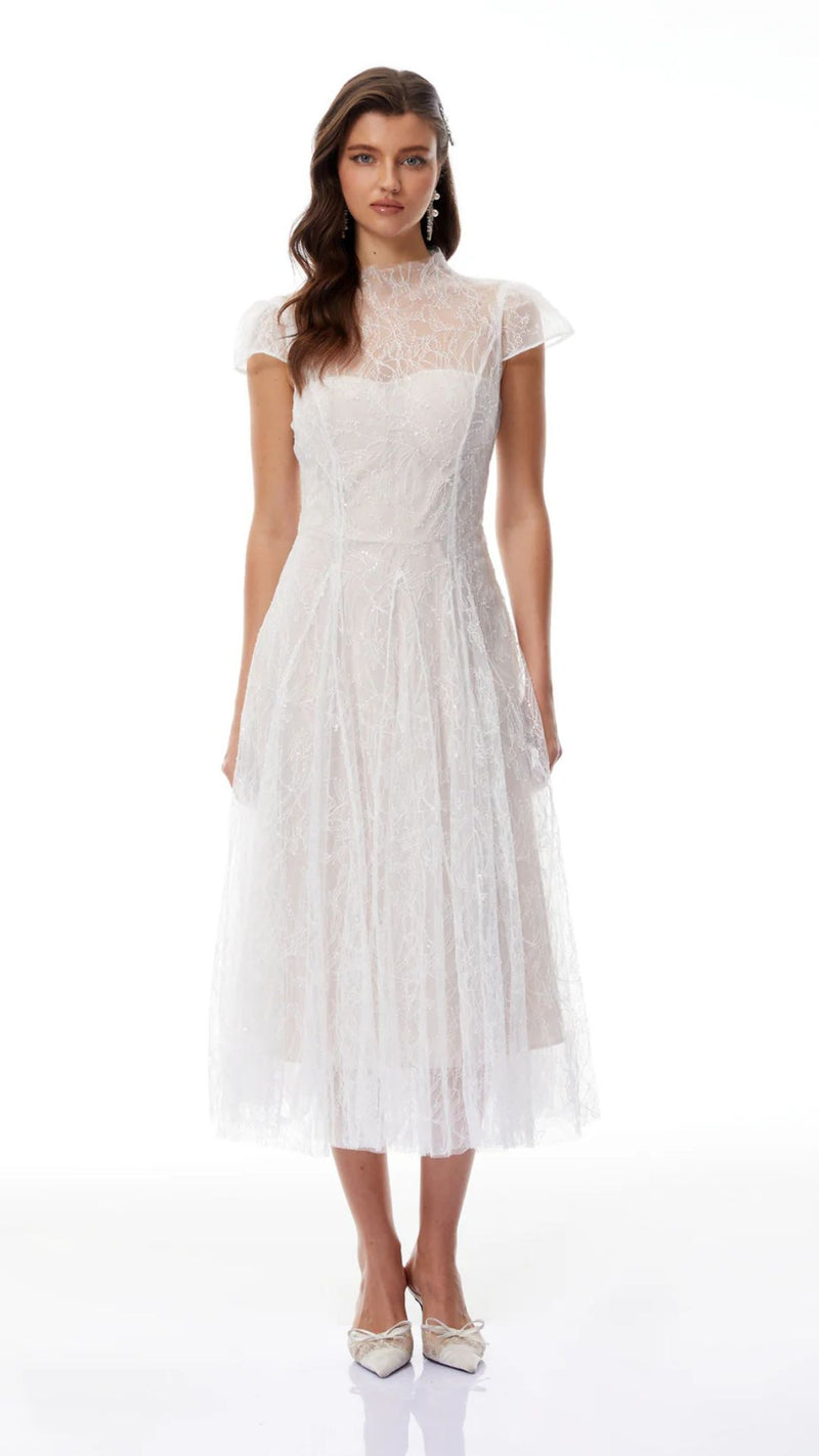 فستان متوسط الطول مزين بالزهور