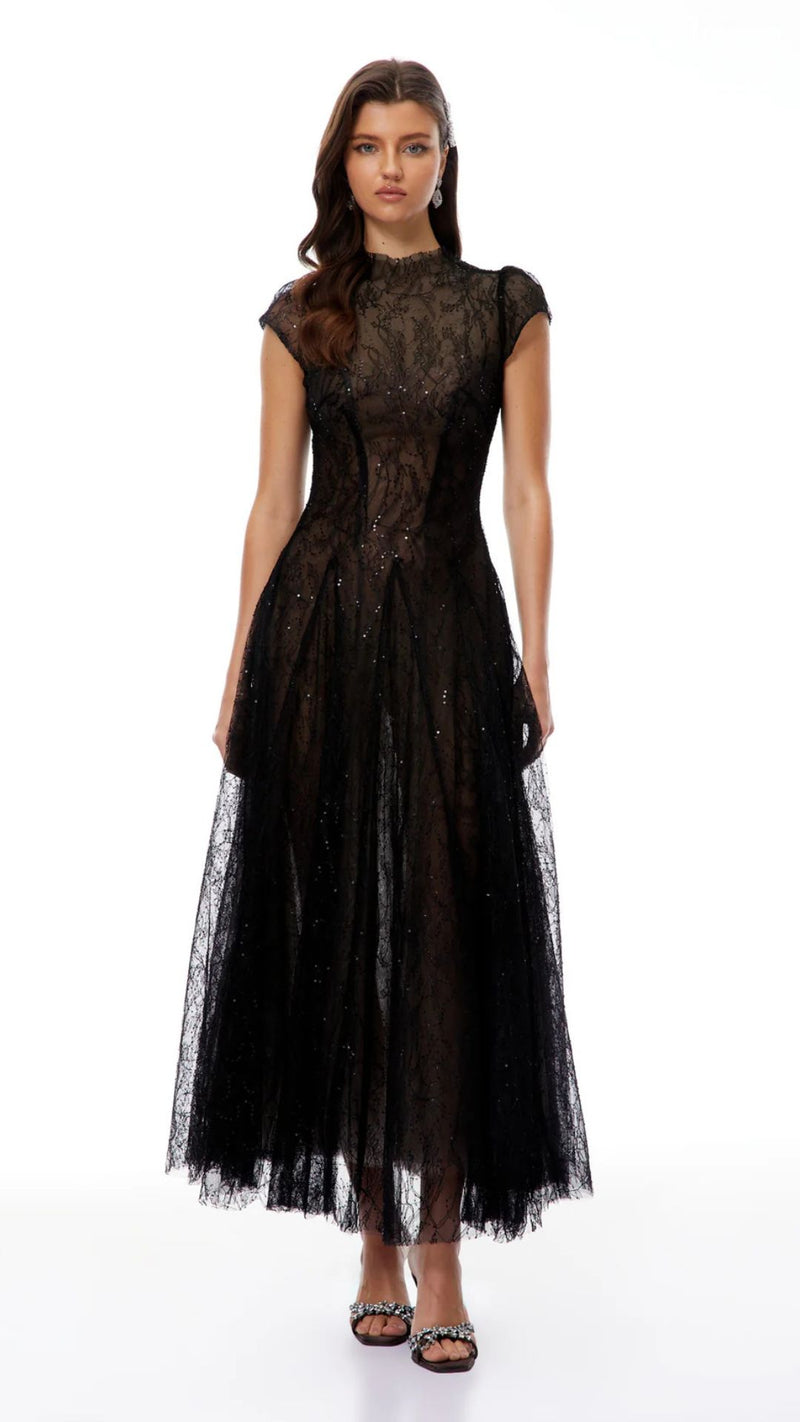 فستان انيق باللون الاسود بفتحة ٧
